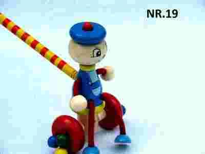 PCHANKA DREWNIANA PAJAC SZNURKOWY ZDJĘCIE NR.19, KIEDY JEDZIE PCHANKA PAJAC MACHA NOGAMI W PRAWO I W LEWO, KORALIKI NA KOŁACH STUKOCĄ