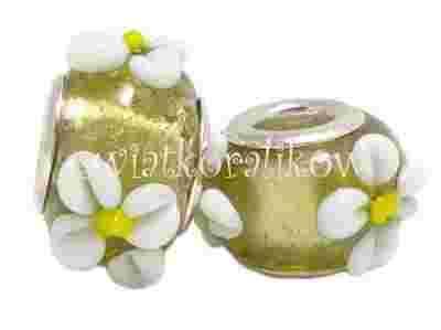 PD305 Lampwork koraliki modułowe z białymi kwiat