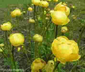 PEŁNIK EUROPEJSKI roślina o kulistych kwiatach