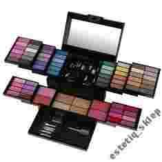 Make-up kit francuskiej marki Peggy Sage. Paleta składa się z 48 cieni o strukturze satynowej (8), satynowej z drobinami (30), metalicznej (9) i matowej (1). Cienie są dobrze napigmentowane, każdy z nich jest wyrazisty i intensywny. Aplikacja przebiega sprawnie, ponieważ łatwo się rozprowadzają i rozcierają na skórze. Dostępny wachlarz kolorystyczny odcieni m.in. fioletu, różu, zieleni, brązu, szarości, bieli, złota umożliwia wykonanie makijażu dziennego lub wieczorowego. Zestaw uzupełniają 3 pudry brązujące z delikatnie satynowym wykończeniem, 1 puder rozświetlająco-brązujący, 4 róże (satynowe; 2 z dużą ilością migoczących drobin, 2 bez drobin), 4 pomadki, 12 błyszczyków. Całość dopełniają: lusterko (umieszczone pod pokrywą zamykającą), 5 podwójne aplikatory do cieni, 2 małe pędzelki do aplikacji błyszczyków/ pomadek, 2 małe pędzel do różu/ pudru, 1 duży pędzel do różu/ pudru, 1 szczoteczka i grzebyk do stylizacji brwi (2w1), 2 pojedyncze aplikatory na długim trzonu, 2 pędzelki do aplikacji błyszczyków/ pomadek na długim trzonku, 1 pędzel do cieni. Akcesoria do makijażu, dzięki srebrnemu wykończeniu, wraz z paletą tworzą bardzo elegancką całość.