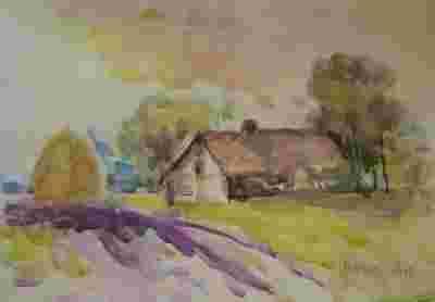 PEJZAŻ - CHATA - DOM - wieś - akwarela 17x25cm