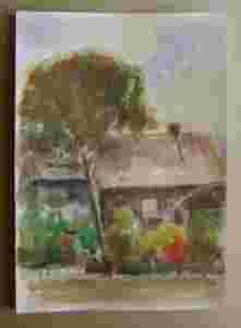 PEJZAŻ - CHATA - DOM - wieś - akwarela 21x29cm