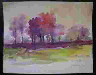 pejzaż CZERWONE DRZEWA abstrakcja - akwarela 23x29