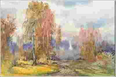 PEJZAŻ -- JESIEŃ --- Akwarela