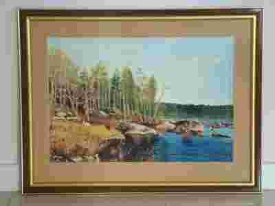 PEJZAŻ NA JEZIOREM III AKWARELA OPRAWIONA OKAZJA!