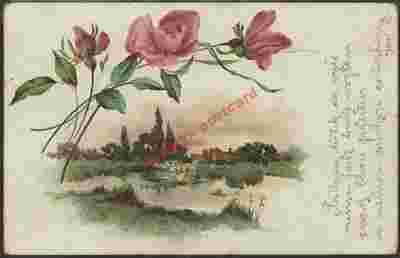 Pejzaż piękne róże KOLAŻ 1900r.