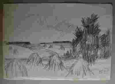 pejzaż STOGI - POLA - ołówek 28x40cm