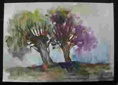 pejzaż - WIERZBY JESIEŃ DRZEWA - akwarela 20x29cm