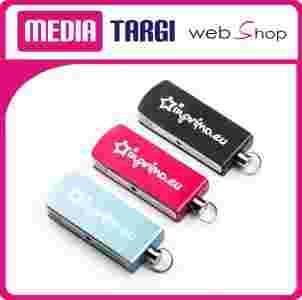 Przenośna pamięć USB umożliwiająca szybkie użycie, bez konieczności pamiętania o ciągle gubionych zatyczkach. Dzięki obudowie, która jednocześnie jest ramką dla wysuwanego przez obrót włącznika, urządzenie może być szybko przygotowane do użycia.