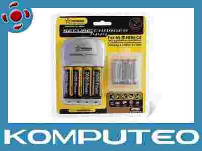 Komfort ładowania - 4 niezależne kanały pozwalają ładować od 1 do 4 akumulatorów, o różnych wielkościach i pojemnościach, w tym samym czasie. Pełna kontrola - gwarancja bezpiecznej pracy, dzięki indywidualnej kontroli temperatury i prądów ładowania dla ka, żdego z kanałów. Odcięcie -DV, 0DV, +DV; Inteligentne ładowanie - wbudowany mikroprocesor stale kontroluje pracę ładowarki, chroniąc ogniwa przed przeładowaniem.Automatyzacja pracy - automatyczne wykrywanie baterii pierwotnych oraz automatyczne przełączan, ie w tryb ładowania podtrzymującego. Pełny monitoring - wbudowany wyświetlacz LCD pokazujący poziom naładowania akumulatorów (4 poziomy: poniżej 30%-30%-60%-100%). Czas ładowania: AA: od ~1h[1xAA] do ~4h[4xAA],AAA: od ~45min[1xAAA] do ~3h[4xAAA].