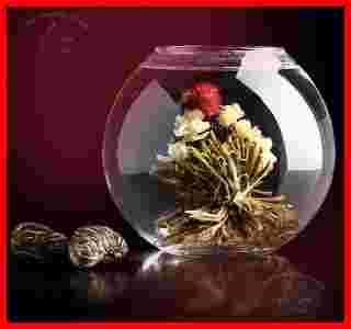 Ręcznie zwijana herbata kwitnąca. Przed zaparzeniem ma ona kształt niepozornej fasolki, która umieszczona w gorącej wodzie przekształca ukazując płatki jaśminu i chryzantemy. Możemy więc dopieścić nie tylko podniebienia delikatnym smakiem unikatowych kompozycji, ale także nacieszyć oczy prawdziwym spektaklem, jakim jest rozkwitanie pączka w dzbanku. Niezwykłe specjały, mogą być nie tylko kwitnącym ukoronowaniem wystawnej kolacji, lub obiadu z przyjaciółmi. Świetnie nadają się także na prezent, będąc zaskakującą niespodzianką. Polecam gorąco!!