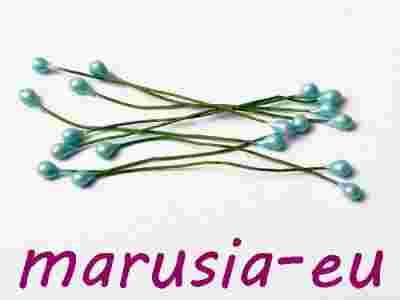Perełki na druciku perły kulki 12 szt BŁĘKITNE