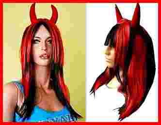 PERUKA czerwona diablica rogi panieński 55cm 1473