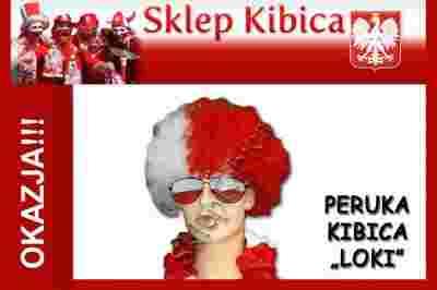 PERUKA KIBICA BIAŁO-CZERWONA, PERUKA LOKI, AFRO