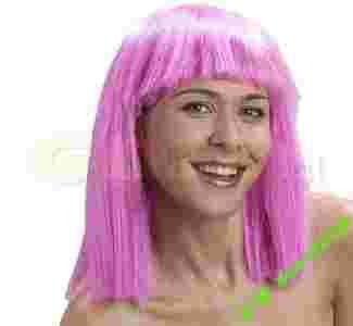 Jasnoróżowa peruka z grzywką wykonana z włosów sztucznych.