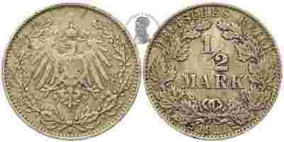 1/2 marki 1911 J, srebro, stan 3, szara patyna, rzadka mennica