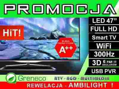 Dwustronny system Ambilight zapewniający większą intensywność wrażeń podczas oglądania. Technologia optycznie poszerza ekran i pozwala przenieść się w głąb akcji.