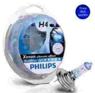 Proponuję zakup zestawu żarówek samochodowych Philips BlueVision Ultra H4 12V 60/55W + 2xW5W. Jest to nowa wersja żarówek Philips BlueVision, które dzięki zastosowaniu unikalnej technologii PHILIPS GRADIENT COATING zapewniają elegancki, niebieskawy efekt w reflektorach oraz stylowy wygląd samochodu.