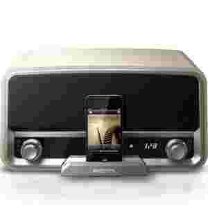 - Urządzenie zaprojektowane w stylu słynnego radia firmy Philips z 1955 odtwarza i ładuje urządzenia iPod i iPhone oraz jest wyposażone w stereofoniczny tuner FM