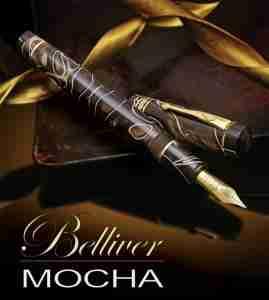 Pióro wykonane jest ręcznie, z najlepszej lekko transparentnej żywicy (resin) w kolorach Mocha. Fluorescencyjne odcienie koloru jasnej kawy z mlekiem przenikają się wzajemnie z głębszym brązem dając zupełnie fantastyczny, świetlisty efekt głębi!