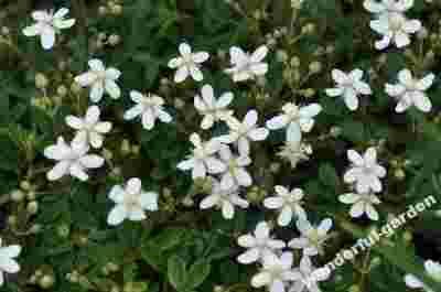 Ta odmiana pięciornika posiada pędy, które drewnieją u nasady. Osiąga on około 10 – 20 cm wysokości. Od maja do września kwitnie, wpuszczając małe, białe kwiaty w luźnych kwiatostanach. Pięciornik ten posiada także ładne, ciemnozielone liście, które jesienią ładnie przebarwiają się na pomarańczowe.