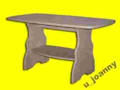 Ława wykonana z wysokiej jakości płyty laminowanej o grubości 18mm w kolorze klon. Blat zaowalony wykończony miękkim profilem PCV w kolorze laminatu. Ława posiada zamontowaną pod blatem półkę. Ława stoi na plastykowych ślizgaczach.