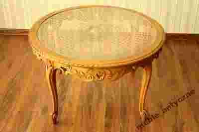 Wytworna ława w stylu Ludwikowskim z rafią, na rafii osadzona jest szyba, całość mebla jest wykonane z masywu orzechowego co daje niepowtarzalny wygląd. Stan ławy jest bardzo dobry.