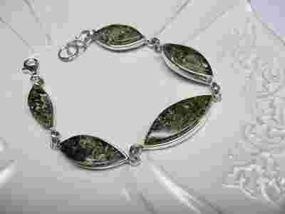 Piękna Bransoleta Zielony Bursztyn i Srebro