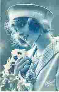 PIĘKNA KOBIETA W KAPELUSZU KWIATY-FRANCJA-BLEUET