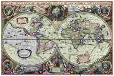 PIĘKNA MAPA ŚWIATA Hendrik Hondius 1630 r.