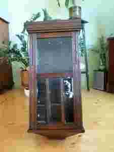 Przedmiotem licytacji jest piękna zabytkowa szafeczka do zawieszenia . Pierwotnie szafeczka była skrzynią od zegara ale tak wygląda równie pięknie i stylowo . Przedmiot prezentuje się doskonale i jest naprawdę dekoracyjny . Mebelek pochodzi z lat 1910 - 1920 i wykonano go w stylu secesji . Przedmiot jest wykonany z drewna dębowego . Szafka prezentuje się doskonale ponieważ została odnowiona . Drzwi szafki są przeszklone . Górna szybka jest nowa , natomiast dolne są oryginalne z epoki ; kryształowe i fazowane . Mebelek jest nie tylko bardzo ładny ale i funkcjonalny . Drzwi mebelka zamykają się na niewielkie haczyki. Wnętrze szafeczki kryje jedną szklaną półeczkę . Szafkę można wykorzystać na wiele sposobów we wnętrzach o różnym charakterze . Z tyłu szafki znajduje się uchwyt służący do zawieszenia szafki na ścianie . Stan zachowania : bardzo dobry . Nie ma żadnych ubytków czy śladów po owadach . Elementy szklane są całe . Jedyny mankament stanowią ryski na drewnie we wnętrzu szafki oraz otworki po mocowaniu mechanizmu ( widoczne w powiększeniu na ostatniej fotografii ). Gdy do szafki zostaną wstawione przedmioty , będą one zupełnie niewidoczne . Na żywo przedmiot prezentuje się o wiele lepiej niż na fotografiach . Polecam .