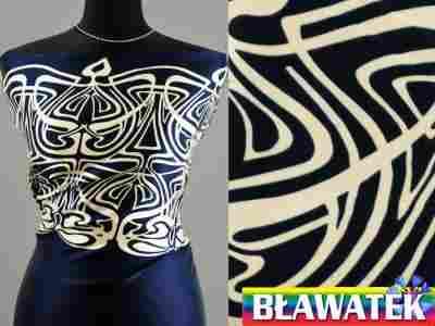 Przedmiotem aukcji jest piękna satyna w granatowym kolorze z ciekawym wzorem po jesdnej stronie szerokości. Tkanina jest zwiewna, delikatna, miła w dotyku, ładnie się nosi i układa, delikatnie połyskująca.