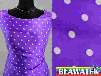 Przedmiotem aukcji jest piękna satyna w białe groszki na fioletowym tle. Tkanina jest bardzo miła w dotyku, ładnie się nosi i układa, delikatnie połyskująca