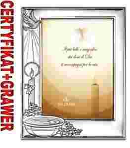 PIĘKNA SREBRNA RAMKA NA CHRZEST Z GRAWEREM