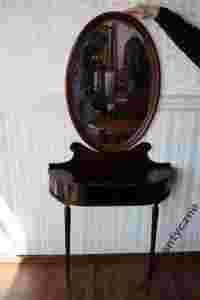 Przedmiotem aukcji jest przepiękna toaletka w stylu Ludwikowskim, składająca się z pięknego kryształowego lustra i komody która osadzona jest na dwóch prostych nogach, wyposażona w szufladę z blatem. Stan: bardzo dobry gotowy do wstawienia.