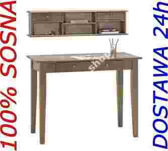 Piękne 100% sosnowe biurko z nadstawką BRĄZ FV