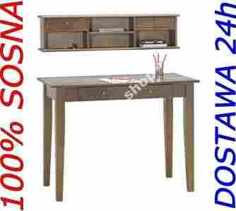 Piękne 100% sosnowe biurko z nadstawką BRĄZ FV