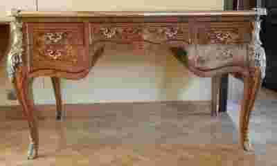 każdy element biurka jest intarsjowany z wielkim smakiem