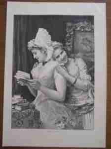 PIĘKNE DZIEWCZYNY LEKTURA MODA drzeworyt 1895 r.