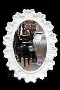 Piękne lustro w bogato zdobionej ramie w kolorze białym.