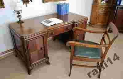 PIĘKNE MIĘDZYWOJENNE BIURKO i FOTEL ,DĄB KOMPLET