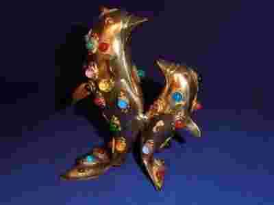 Piękne mosiężne delfiny z kamykami