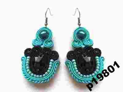 Piękne turkusowo czarne kolczyki sutasz