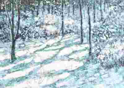 Piękny BATIK zima , las , drzewa, 50cm / 70cm !!!