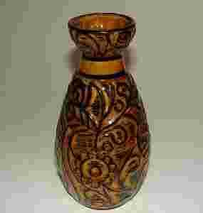 PIĘKNY CERAMICZNY WAZONIK Z TŁOCZONYMI WZORAMI