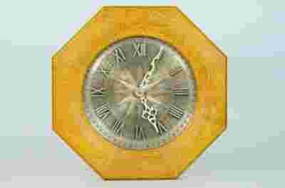 PIĘKNY CYNOWY ZEGAR W DREWNIANEJ RAMIE