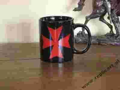 PIĘKNY CZARNY KUBEK Z KRZYŻEM TEMPLARIUSZY