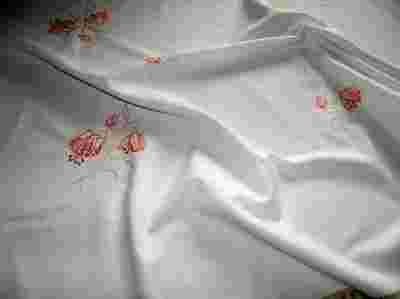 PIĘKNY HAFTOWANY OBRUS W KWIATY 149 / 98 CM