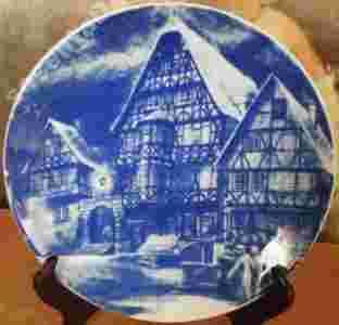 PIĘKNY KOBALTOWY OZDOBNY TALERZ BAVARIA