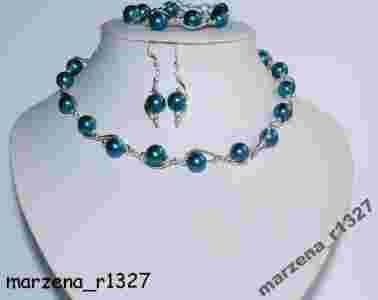 PIĘKNY KOMPLET BIŻUTERII PERŁY GRANATOWE KULE